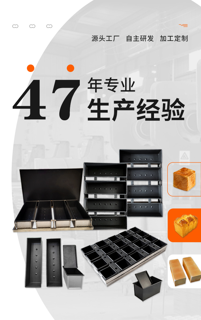 主要產(chǎn)品:鋁合金一體成型蛋糕模具,冷軋板沖壓不粘蛋糕、面包模具,鍍鋁板不粘蛋糕、面包模具,不銹鋼烤盤模具,各種規(guī)格吐司、法棍、漢堡、平盤產(chǎn)品,以及多類型食品機(jī)械等。為更精準(zhǔn)地滿足市場需求,企業(yè)依托自身優(yōu)勢,為廣大合作伙伴提供產(chǎn)品個(gè)性化訂制服務(wù)。